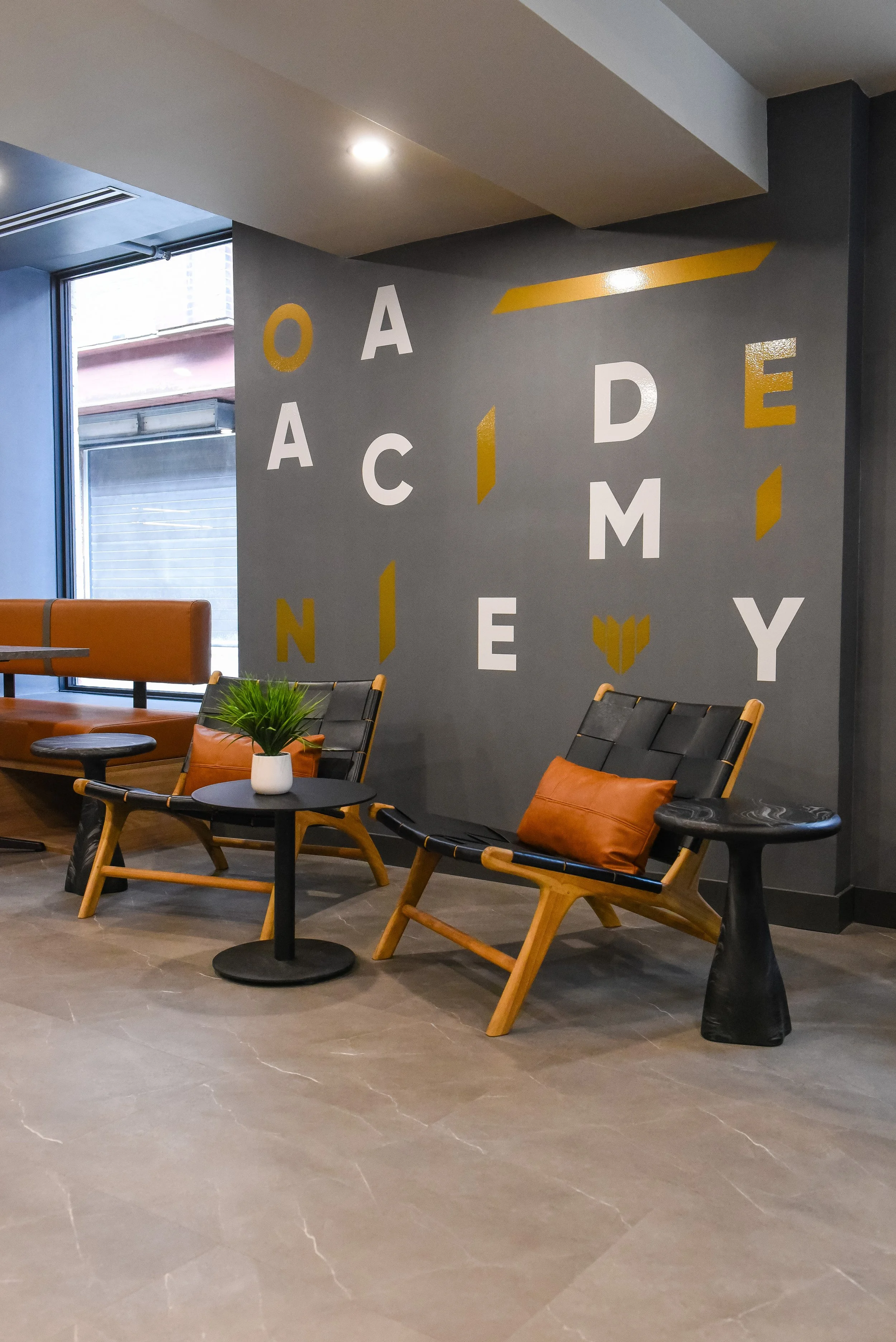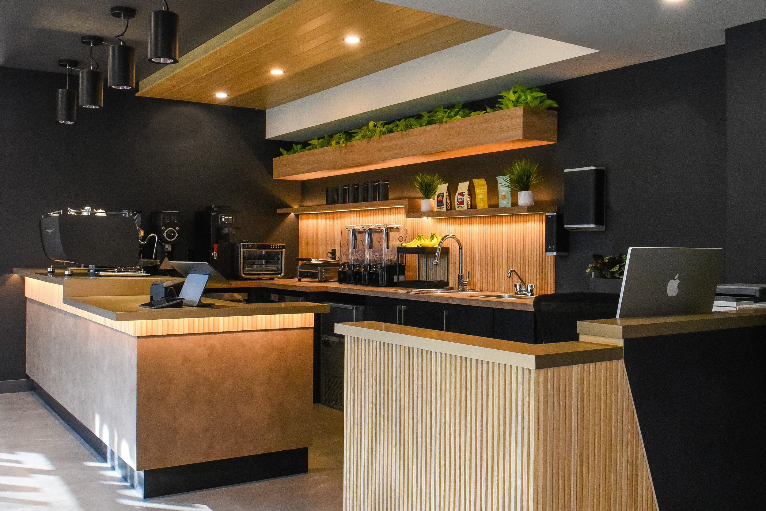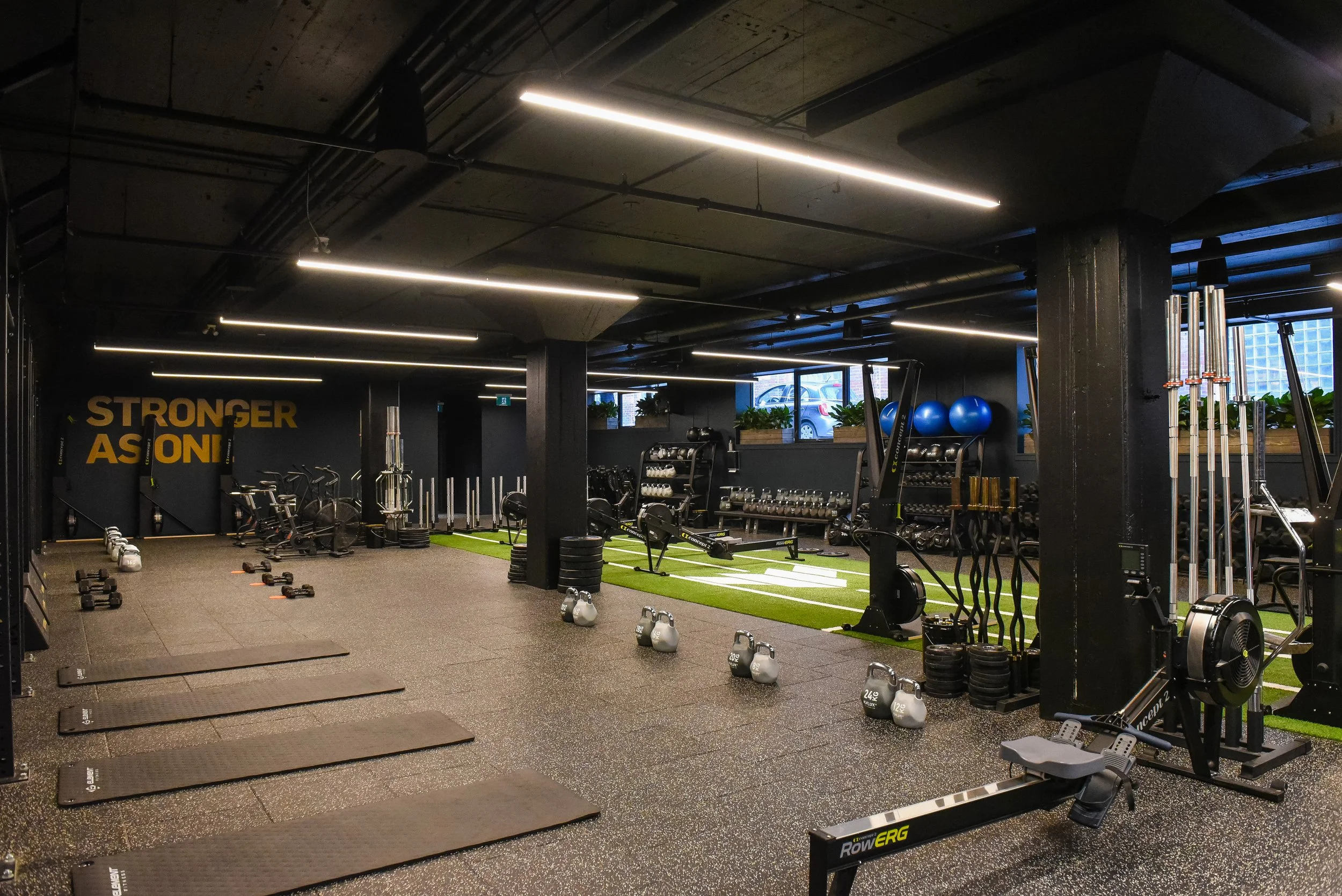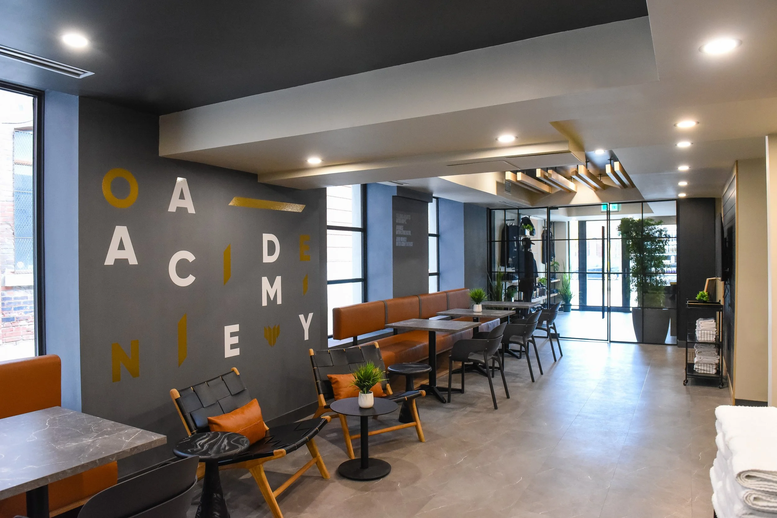 One Academy Wellington is a world-class fitness facility that seamlessly blends a café, retail shop, and guest lounge into a dynamic, community-driven environment. We established a dark yet inviting backdrop enriched with eclectic, casually curated finishes—lush greenery, metallic accents, and fluted wood—to balance industrial edge with a warm, living room feel. Careful space planning ensured intuitive guest flow from the café through the lounge, changerooms, and onto the gym floor.